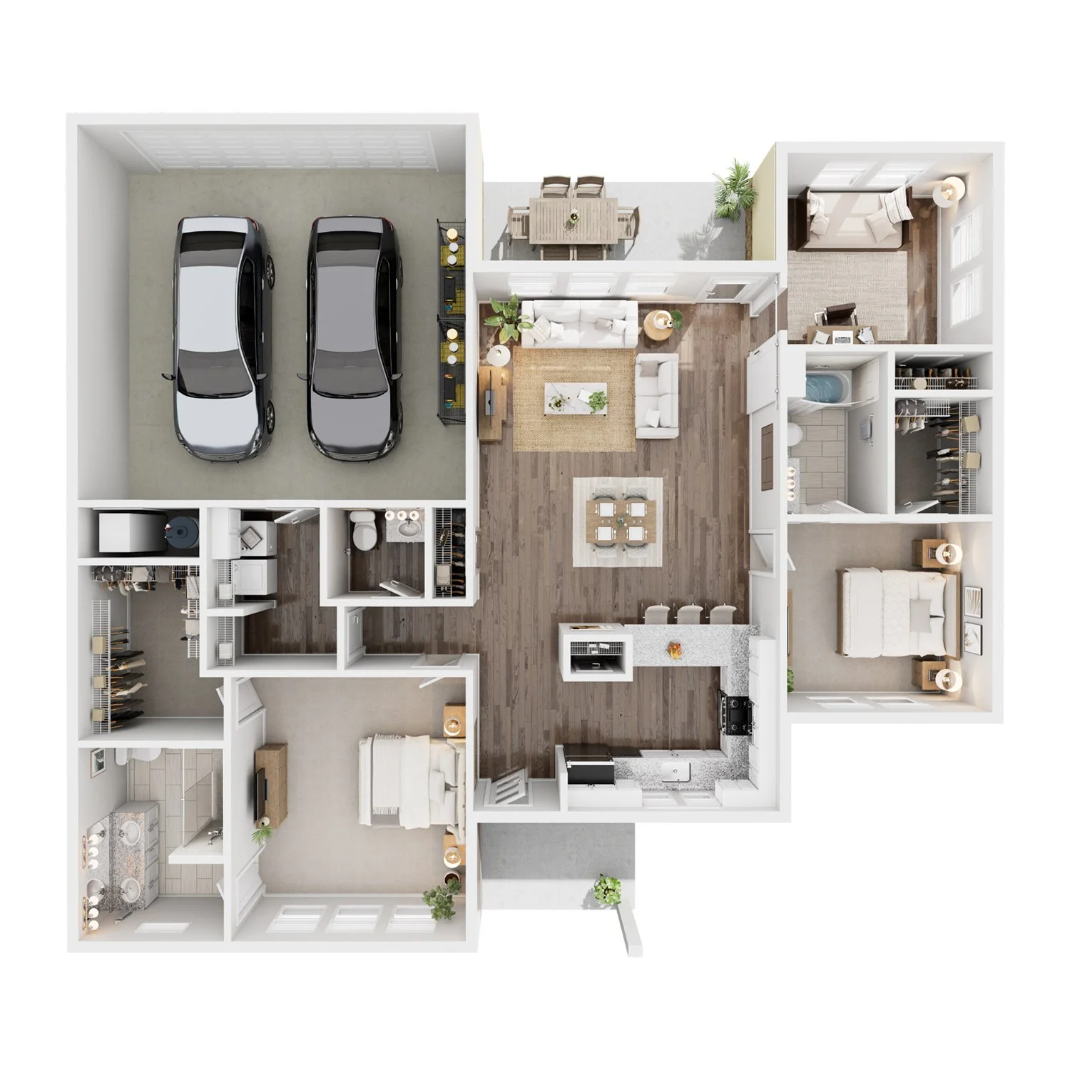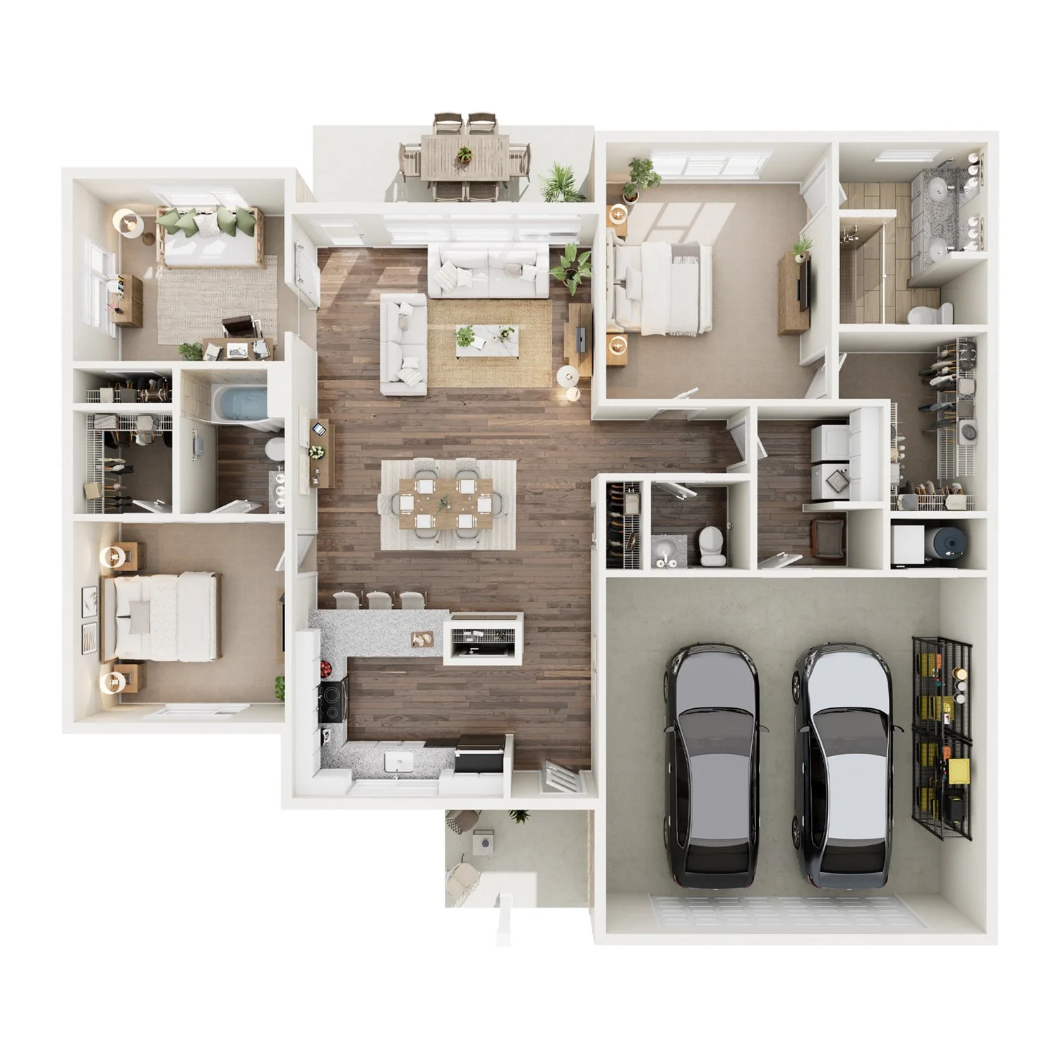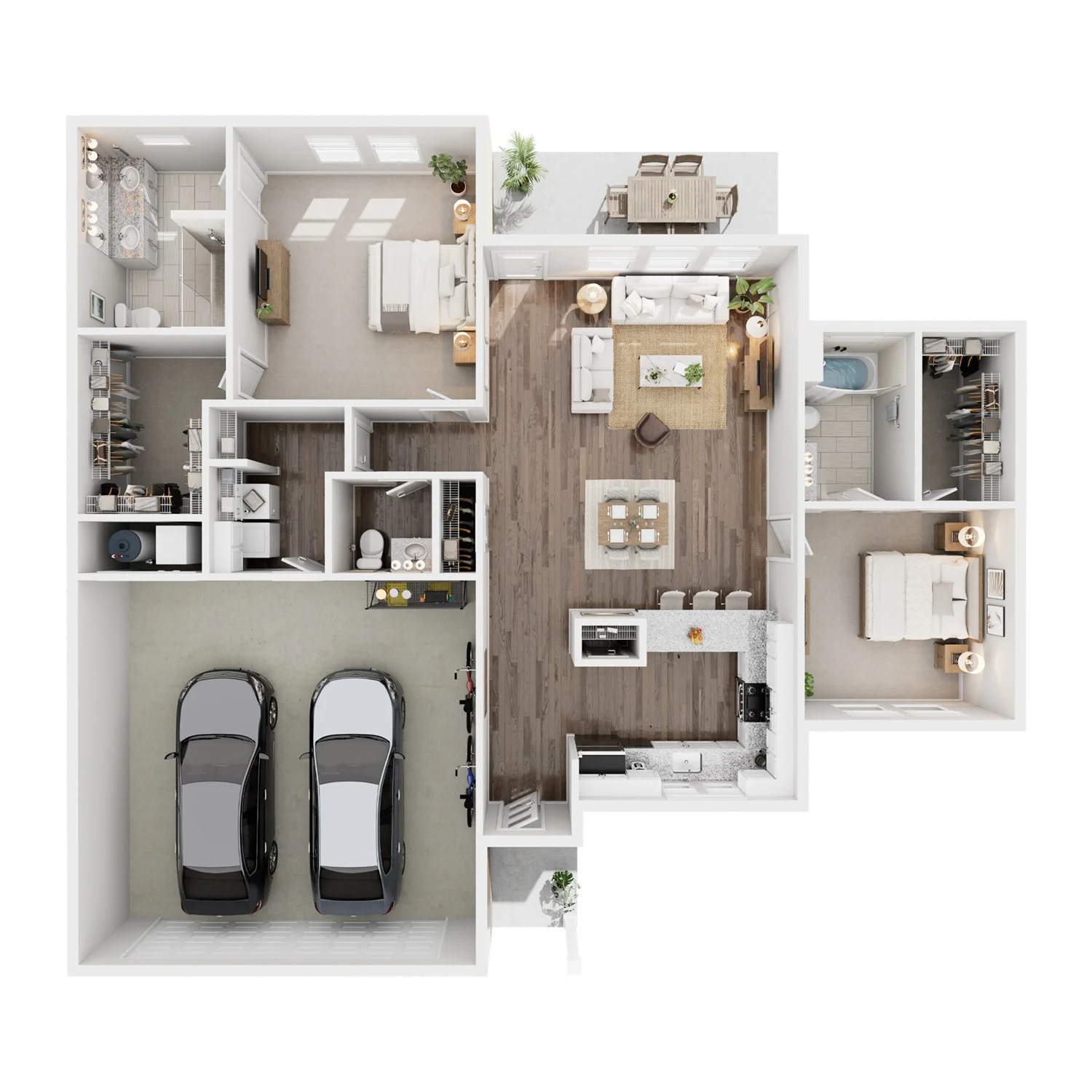 Primary Suites with Attached Baths and Walk-In Closets