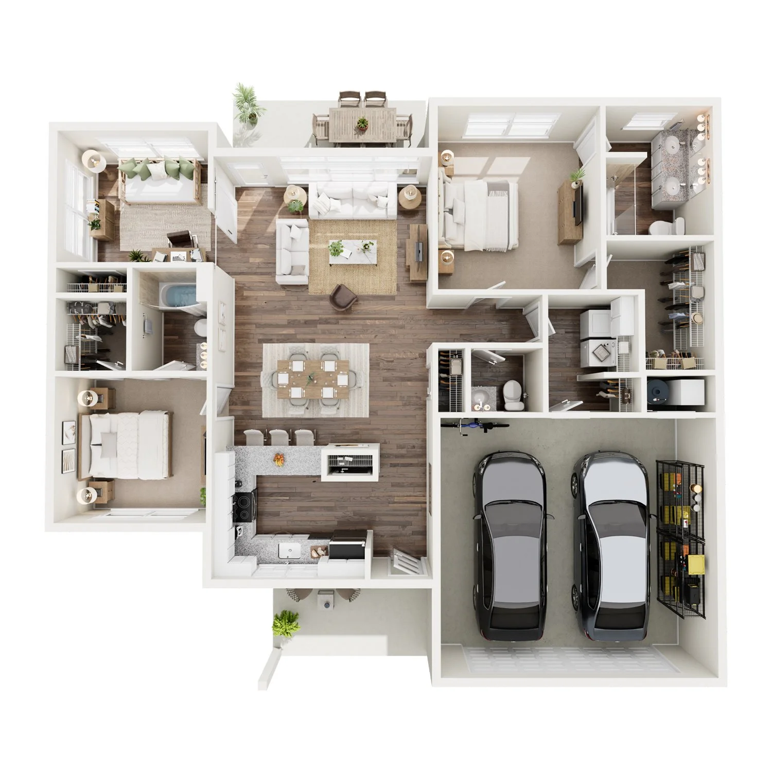 Primary Suites with Attached Baths and Walk-In Closets