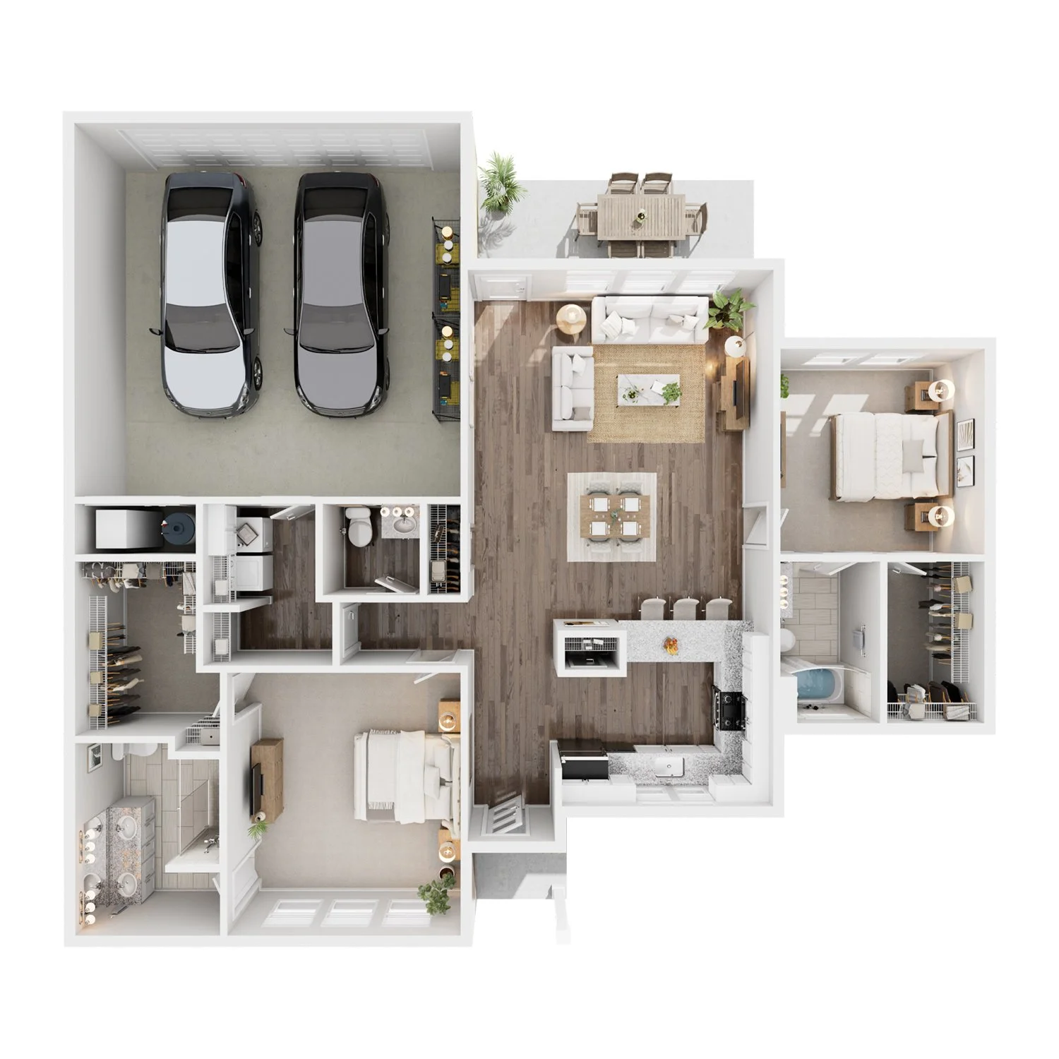 Primary Suites with Attached Baths and Walk-In Closets